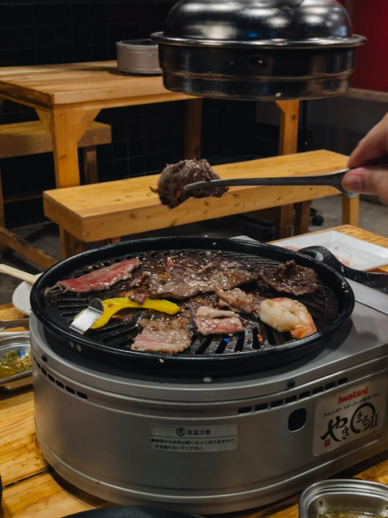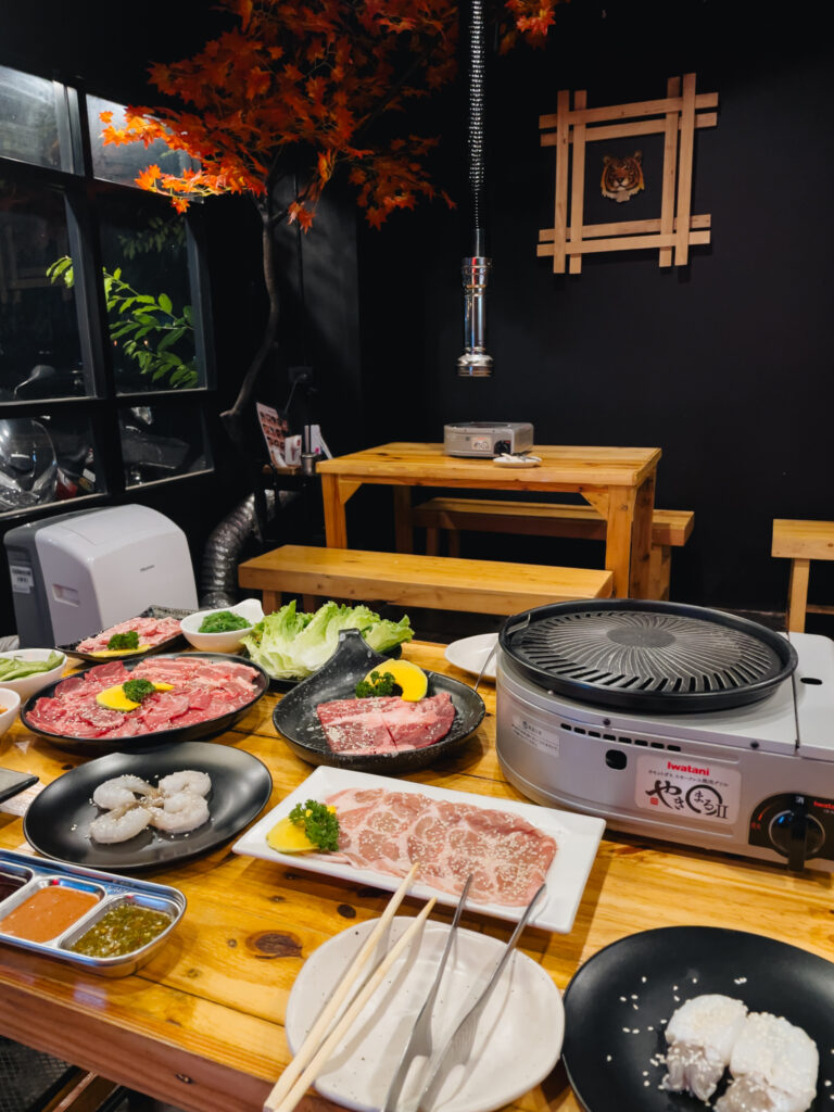 ที่นี่มีเมนูยากินิกุให้เลือกหลากหลาย ทั้งเนื้อไทย–วากิว หมูสามชั้น เบคอน ไส้กรอกญี่ปุ่น ตับหมู หมึกย่าง และอีกมากมาย เสิร์ฟมาพร้อมน้ำจิ้ม 3 สไตล์ที่ไม่เหมือนใคร และถ้าใครสายดริ๊งค์ ก็ต้องไม่พลาดโซนบาร์ ที่มีทั้งเบียร์ โซจู ให้เลือกจิบกันยาว ๆ