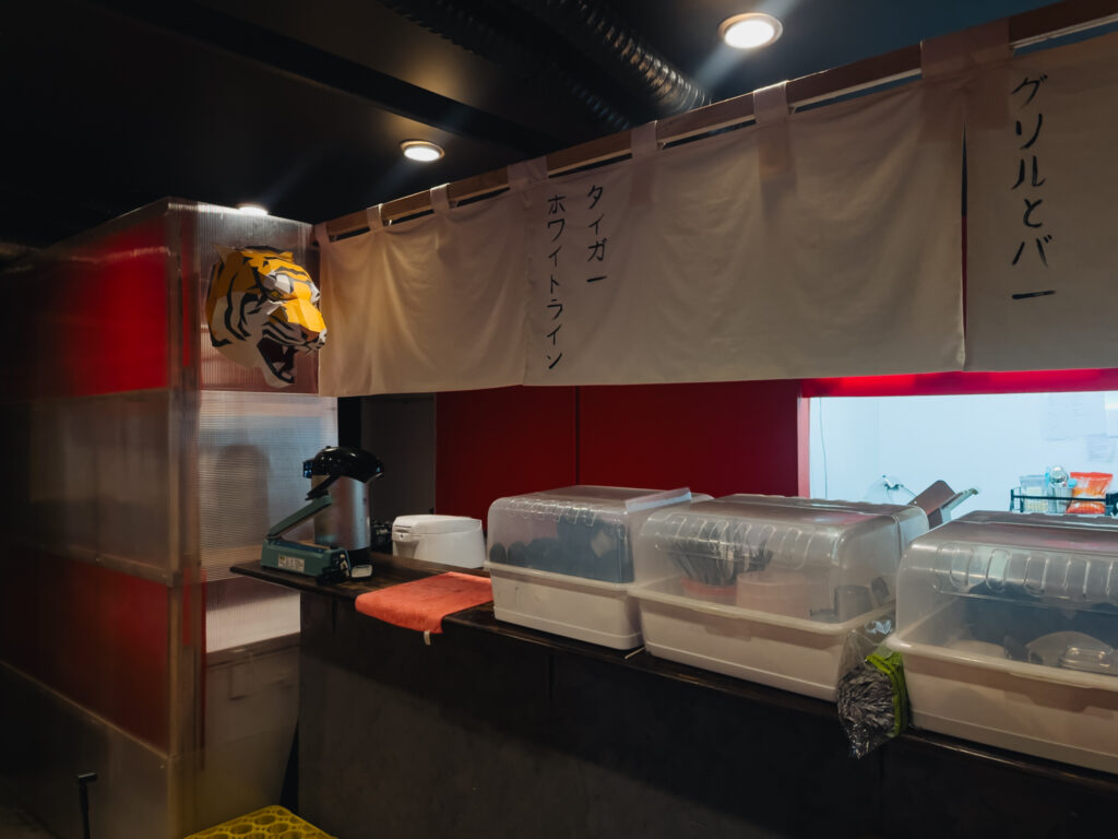 ป้ายไฟ “เสือไว้ลาย” ที่หน้าร้านถือเป็น signature shot เลยก็ว่าได้ ด้านในก็มีมุมบาร์สวย ๆ และโต๊ะไม้พร้อมเตาย่างที่ดูดีมีสไตล์ เหมาะกับการโพสต์ลง IG และชวนเพื่อนมาตามรอย